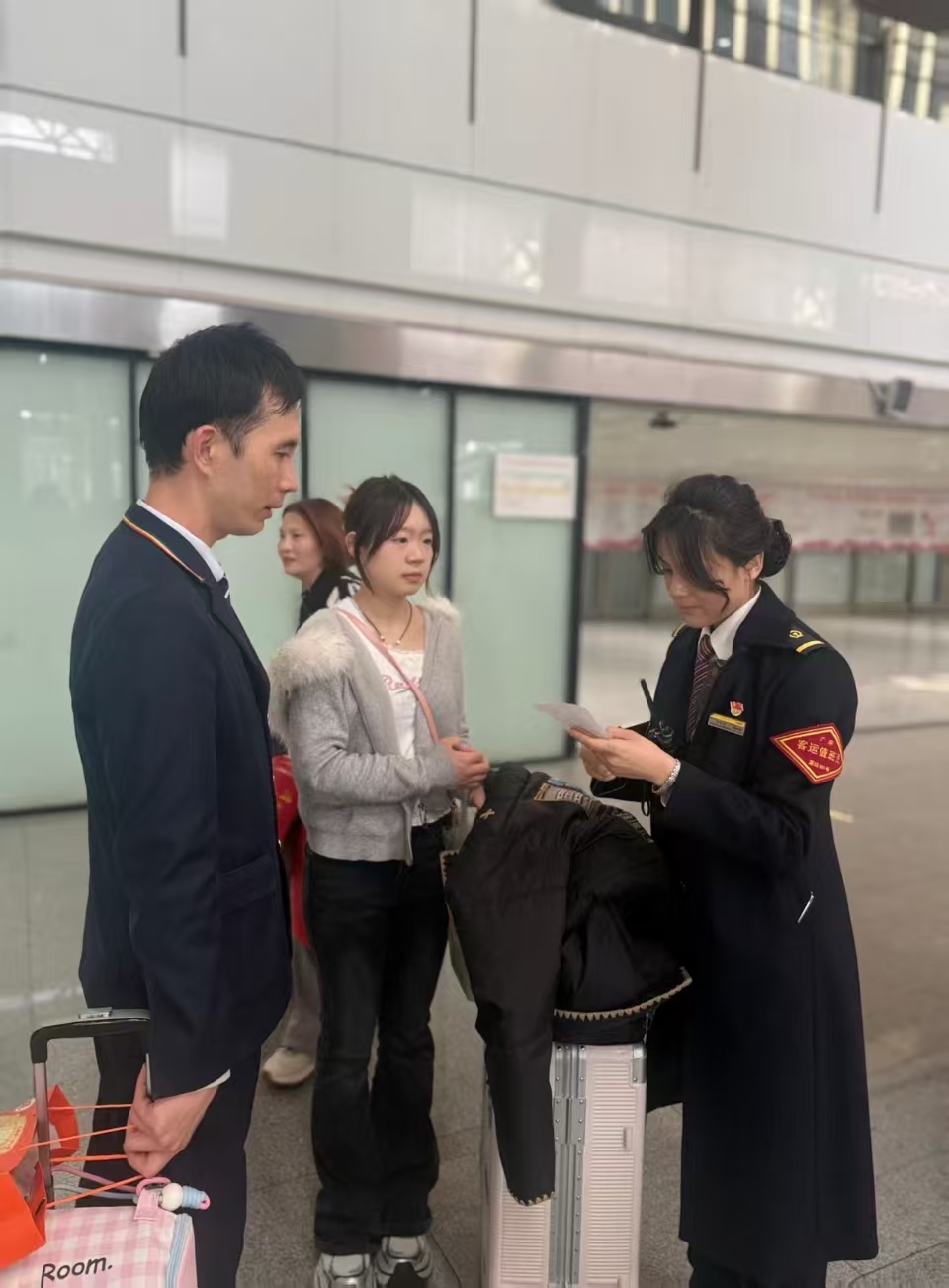 2月19日8时,小姑娘准时来到服务台。刘洋洋已经帮她办好手续,带着她过闸机、下站台,一路送到了车厢门口。刘洋洋又嘱托列车长,到站记得提醒小姑娘。