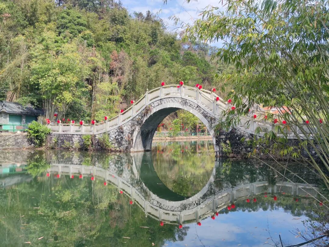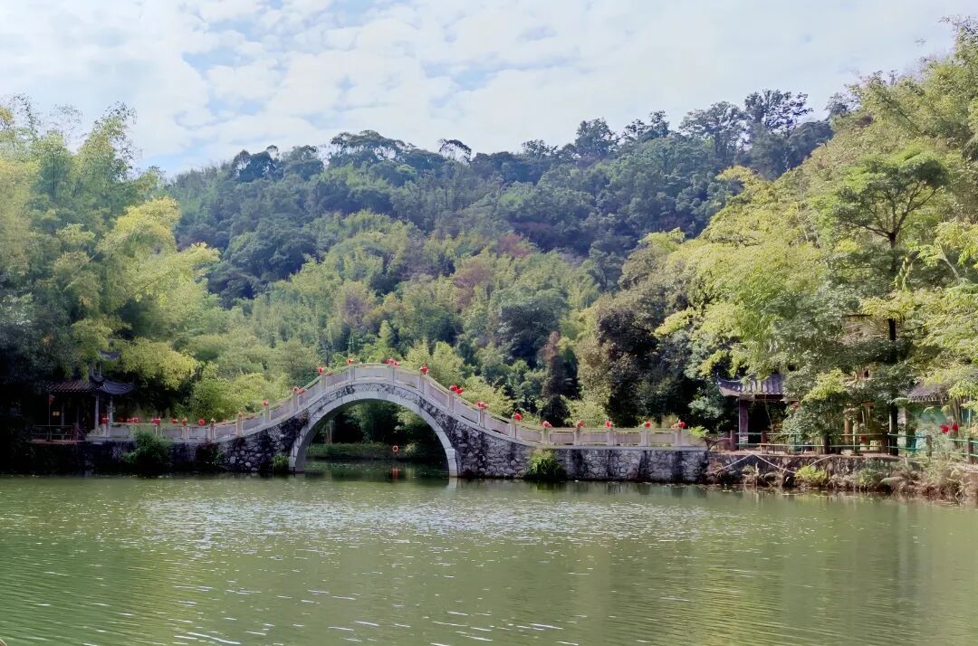 横跨碧翠湖的翠湖桥,是景区的“颜值担当”。石拱造型古朴雅致,桥上红灯高挂,与湖光山色相映成趣。漫步桥上,看青山环抱碧水,微风拂面,随手一拍都是治愈系大片。