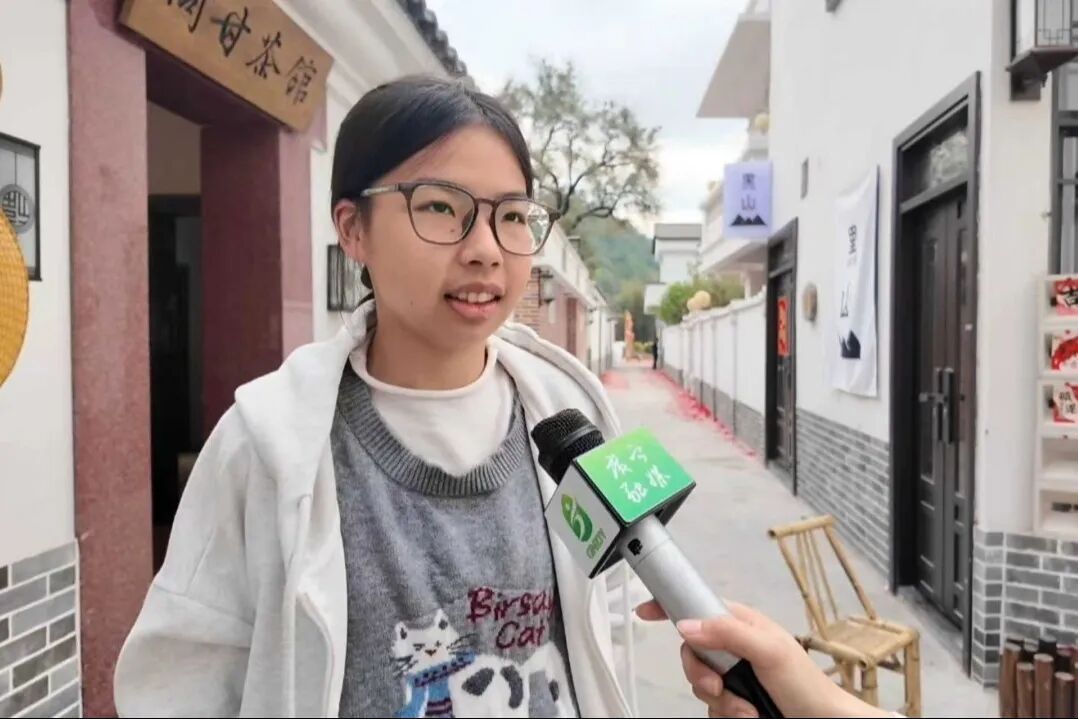 我是从佛山回来,现在我们村发展得这么好,觉得挺开心,增加了很多民宿、奶茶店等业态,可以提供很多的就业岗位,还能带动其他的经济发展,也提供给村民或者是市民一个新的旅游环境。我希望将来能回来,帮助家乡往更好的方向发展。